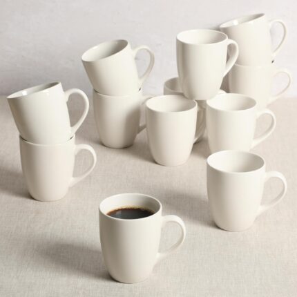 Juego de 12 tazas de café de porcelana de 12 oz, ideales para latte, té caliente, cappuccino, mocha, espresso y chocolate caliente