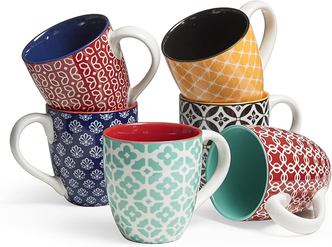 Regalo elegante y divertido: Diseño artesanal único y colores vibrantes que aportan estilo. Juego de 6 tazas ideal como regalo para Thanksgiving, Navidad, inauguraciones y otras ocasiones especiales.