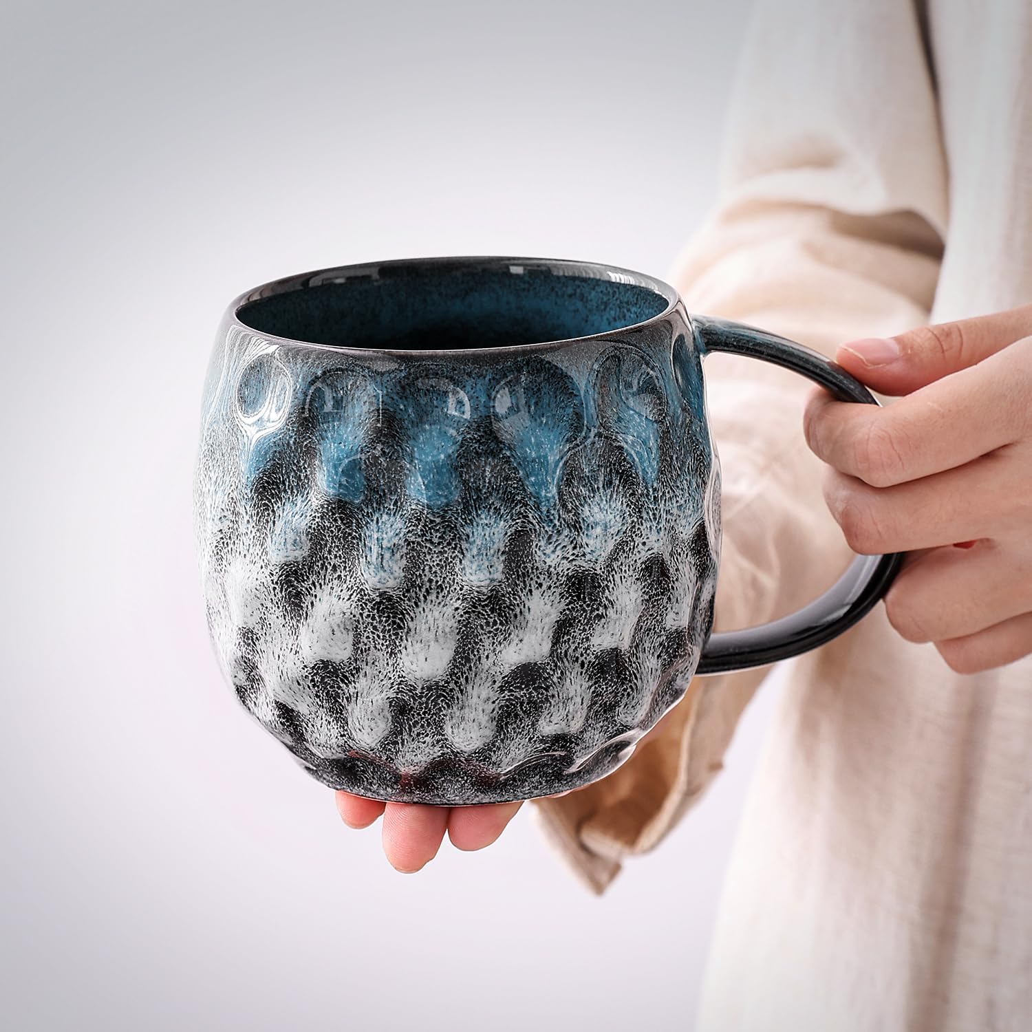 Taza grande de cerámica con asa, esmalte artesanal que cambia de color y agarre fácil